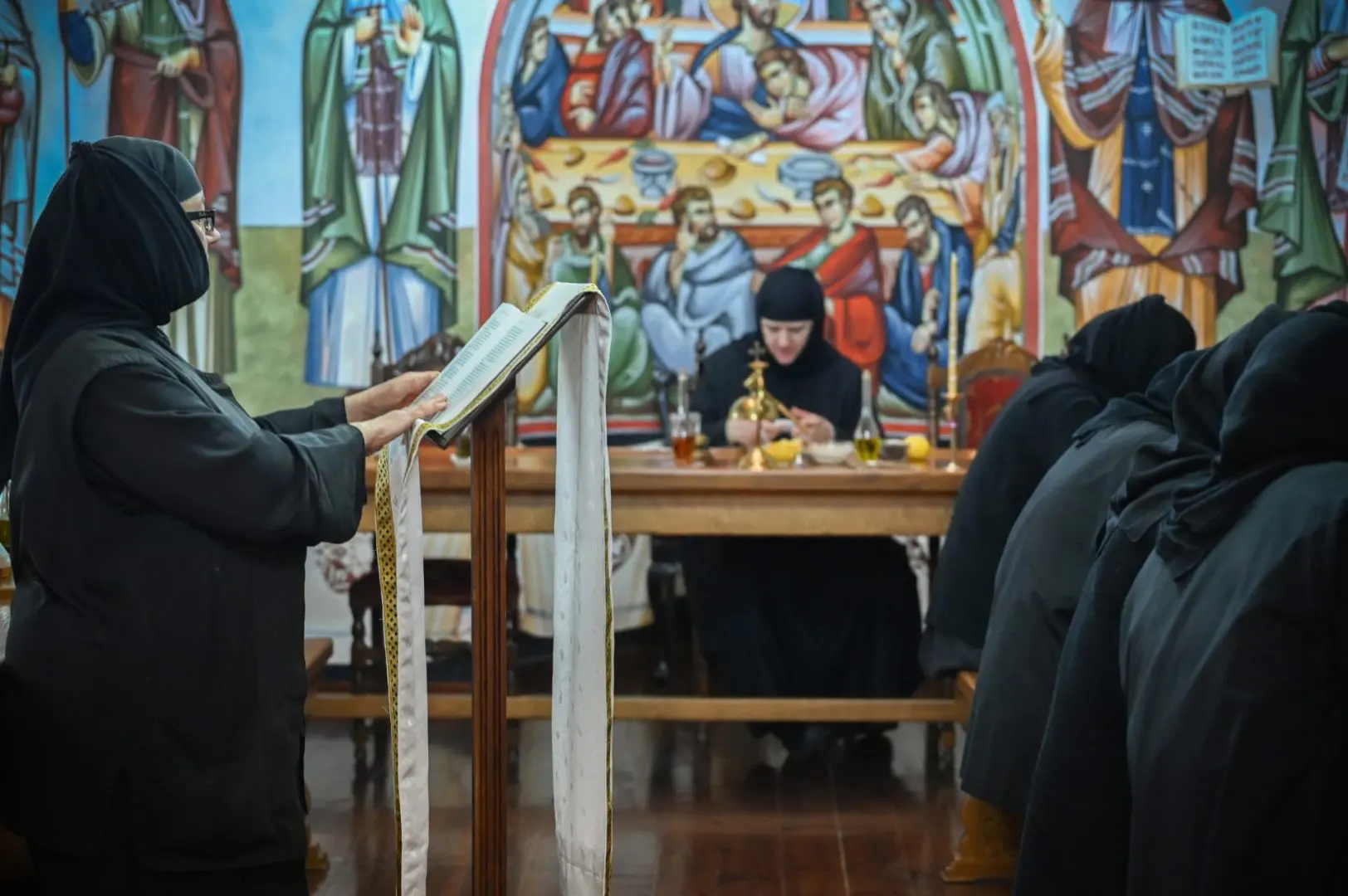 Οι μοναχές – που ζουν σαν μια μεγάλη οικογένεια – υποδέχθηκαν με νηστίσιμα φιλέματα τον Σταύρο Θεοδωράκη και τον προσκάλεσαν να ζήσει μαζί τους, τις προετοιμασίες τους για την Ανάσταση.